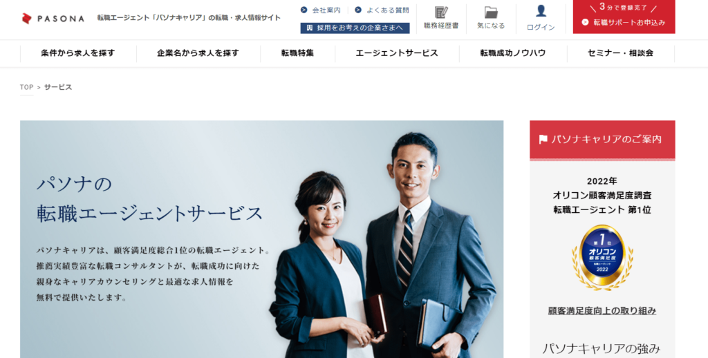パソナキャリアはこちら※出典:オリコン顧客満足度ランキング「おすすめの転職エージェントランキング・比較」