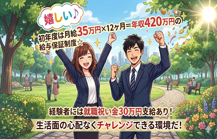 月給400,000~750,000円以上 ※上記の月給は平均収入の目安です。 ☆入社1年目の平均年収は600万円です。あなたもできます! 「月給内訳」 基本給+歩合(営業収入の54.2%)+諸手当 ※歩合率の規定あり。詳… 続きを読む
