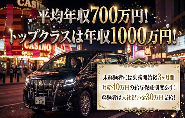 完全予約制で流しでの営業は一切なし!それでも平均年収は700万円!もちろん業界未経験者大歓迎!2種免許取得費用会社負担!給与保証制度あり!