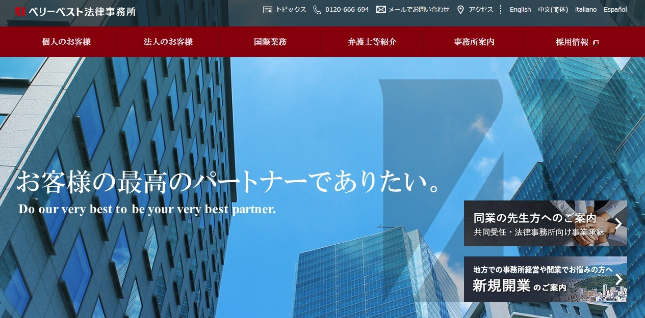 ベリーベスト法律事務所は、債務整理、離婚問題、遺産、法人法務など、多岐にわたる相談を受け付けている法律事務所です。