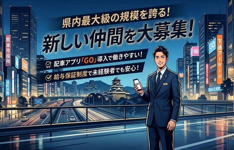 熊本県下最大級のタクシー会社として多くのお客様に認知されているのがTaKuRooです!業界未経験スタートでも乗務開始初月から安定して仕事が入ってくる環境!だからこそ安心してチャレンジでます!2種免許取得費用は会社負担!スタートしやすい環境が整っています!
