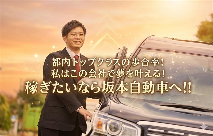 設立から73年の伝統と歴史のある会社!給与保証制度が6ヵ月間月給40万円は自信の表れ!都内トップクラスの歩合率でガッツリ稼いじゃおう!坂本自動車の求人情報!