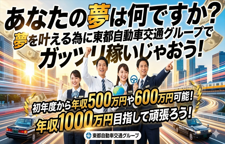 年収500万円は当たり前!?今、タクシードライバーは思っている以上に稼げます!2種免許取得費用サポートで未経験者も歓迎!東都東タクシー(板橋営業所)の求人情報!