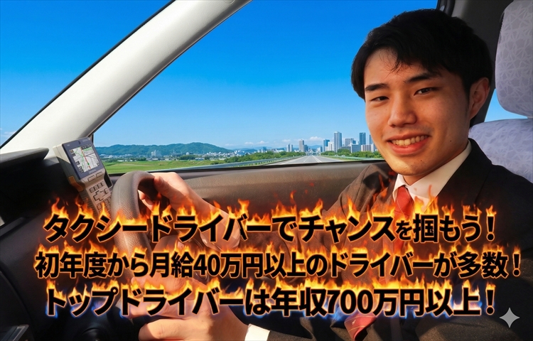 20台半ばで月給40万円越え!そんな夢のある職業タクシードライバー!あなたも同年代よりも稼いで、人生の勝ち組に!!嬉しい給与保証制度もあり!