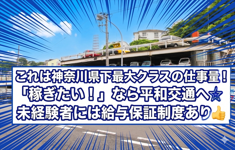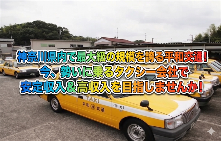 神奈川県下トップクラスの配車件数を誇り、月給30万円以上は当たり前!稼ぎたいなら平和交通へ!未経験者大歓迎!寮費が1年間無料で、全国からのご応募可能!安心して働けるタクシー会社!