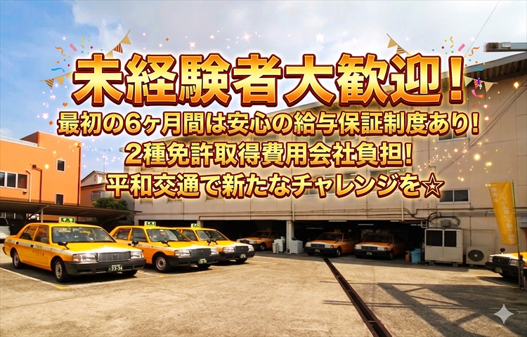 未経験者大歓迎!男女・年齢問わず大募集!神奈川県下トップクラスの規模を誇る、平和交通で働きませんか!寮費が1年間無料で、全国からのご応募可能!安心して働けるタクシー会社!