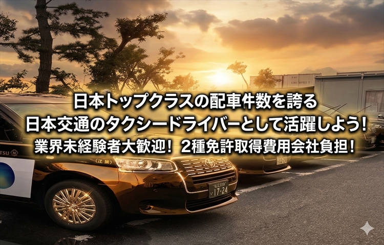 業界最大手の日本交通グループで働こう!待機場所や無線配車本数№1で稼ぎやすい!未経験者には給与保証制度あり!