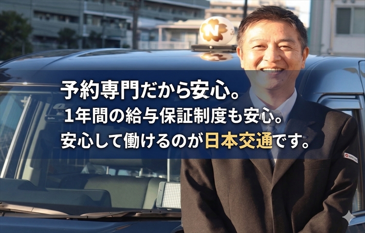 業界最大手の日本交通グループで予約専門タクシードライバーとして働こう!未経験者には1年間の給与保証制度あり!2種免許取得費用会社負担!日本交通(新木場営業所)の求人情報!