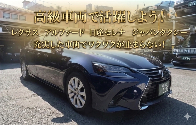 高級車両で活躍しよう!業界未経験者大歓迎!2種免許取得費用会社負担!安心の給与保証制度あり!配車アプリ搭載で稼ぎやすい環境!