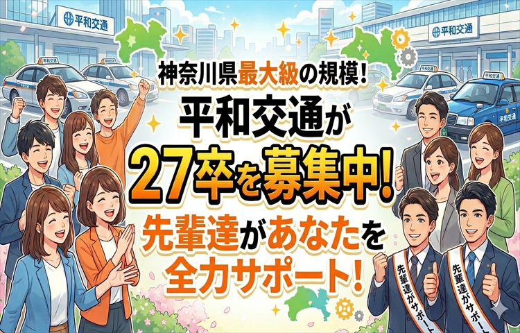 新卒入社実績多数で安心!日本全国からの応募可能!寮費が1年間無料で新生活をサポート!神奈川県下トップクラスの規模を誇る、平和交通で働きませんか!