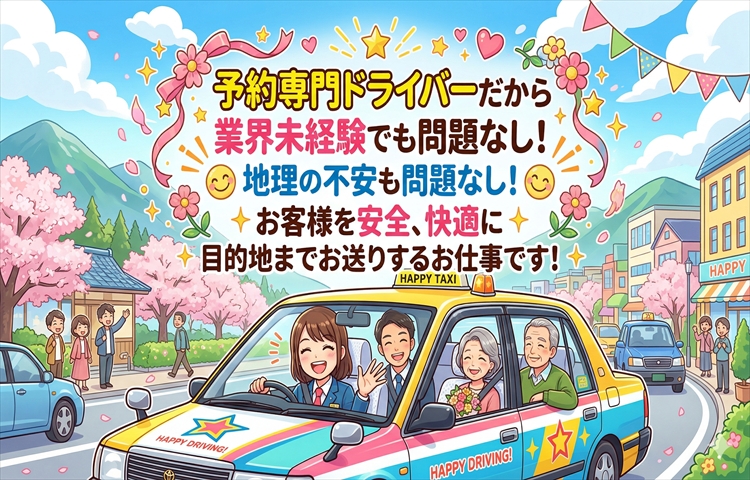 予約専門タクシードライバーだから業界未経験者でも働きやすい!2種免許取得費用会社負担!大手日本交通グループに加盟!日交ひかり株式会社の求人情報!未経験者大歓迎!