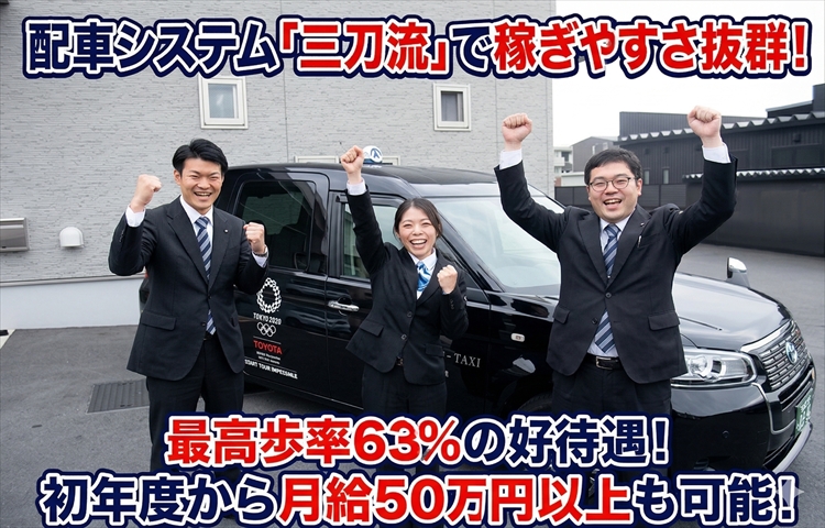 業界最大手の日本交通グループで働こう!待機場所や無線配車本数№1で稼ぎやすい!給与保証制度あり!