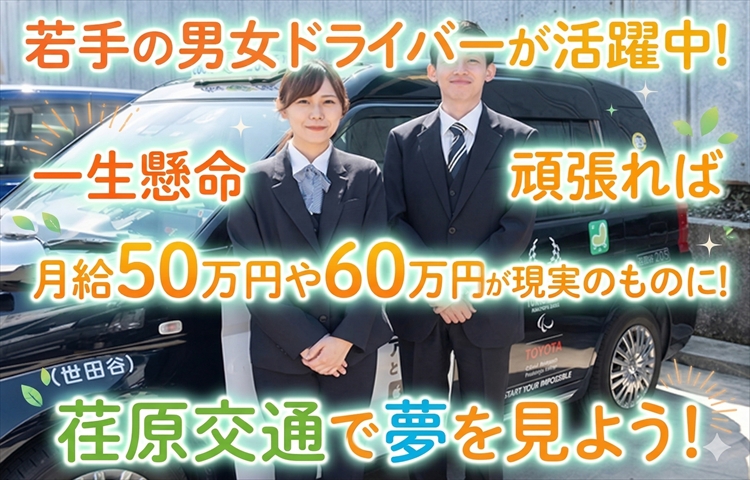 一等地の世田谷区に営業所を構え、利用客の多い地域として非常に働きやすいエリア。安定して月給40万円~50万円以上を稼げるところも魅力的!給与保証制度も安心!
