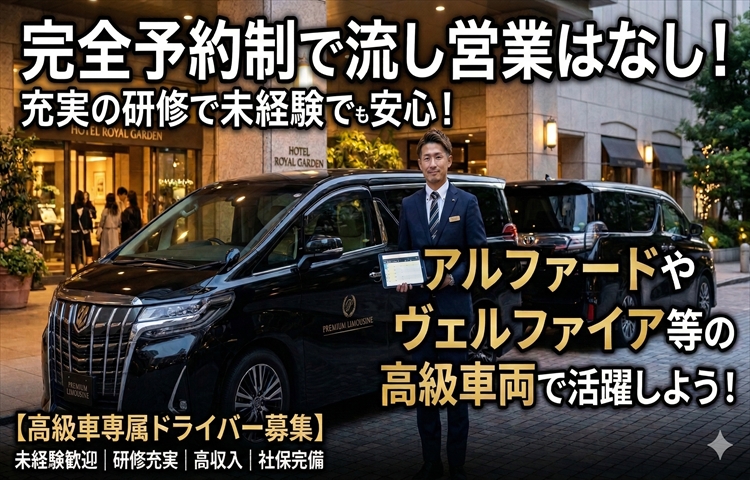 ロイヤルリムジングループはアルファード保有数業界№1!業界未経験からアルファードをはじめとする高級車両で活躍できる舞台があります!2種免許取得費用会社負担!