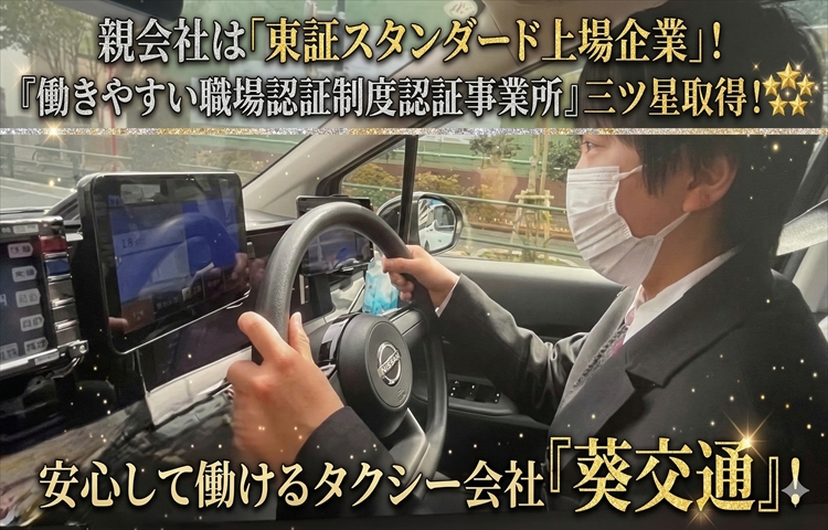 親会社は「東証スタンダード上場企業」!安定した経営基盤の下で働けます!入社1年目から月給40万円以上が可能!安心の給与保証制度もあり!葵交通の求人情報!