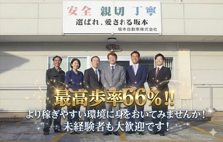 給与保証制度が6ヵ月間月給40万円!都内トップクラスの保証額!さらに、都内トップクラスの歩合率でガッツリ稼いじゃおう!坂本自動車の求人情報!
