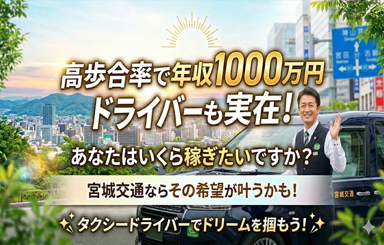 年収1,000万円以上のドライバー多数在籍!歩合率の頭打ち無しでやればやった分だけ稼げる!業界未経験者歓迎!2種免許取得費用会社負担!宮城交通株式会社の求人情報!