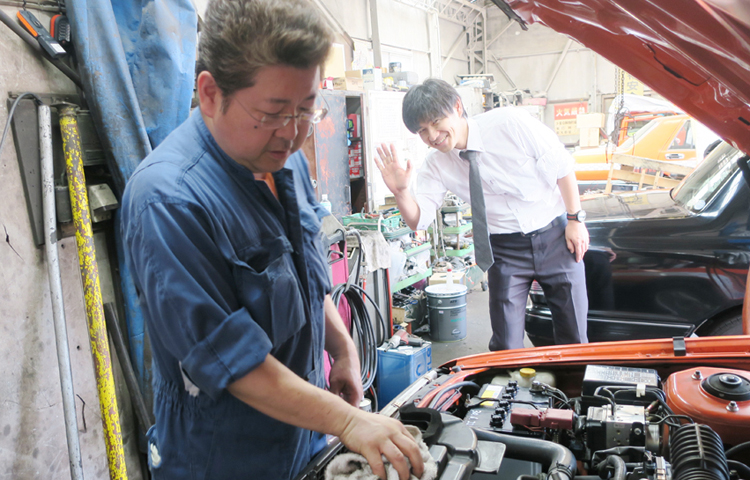 ▲こちらは車両のメンテナンスに精を出す整備士さんを発見!1日5~6台の車をチェックし、安全な運行を支えています。(鈴木さんのお茶目な一面も垣間見えました!)