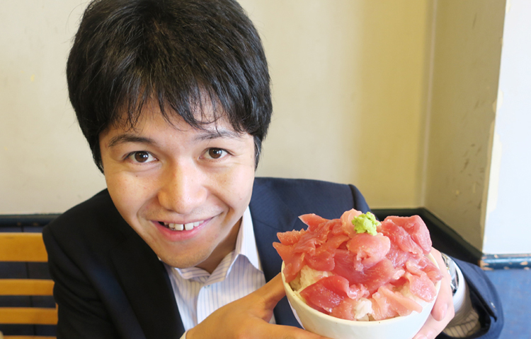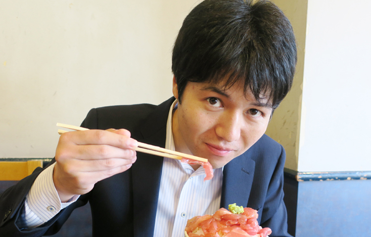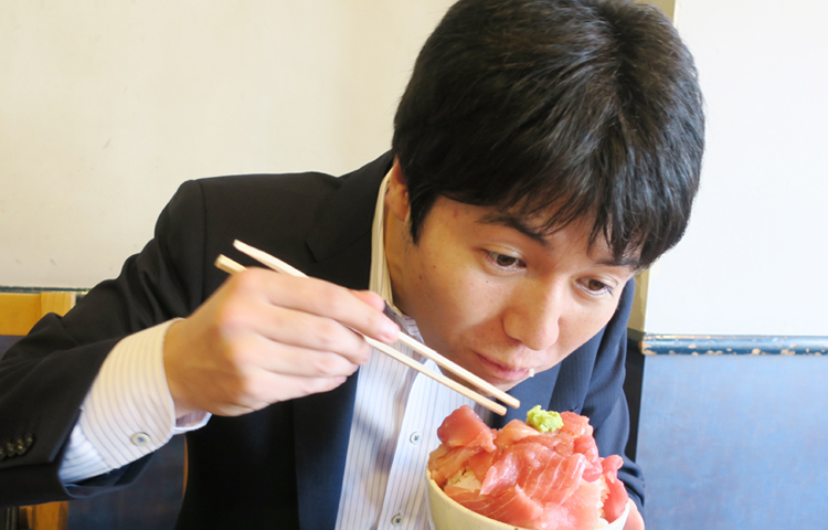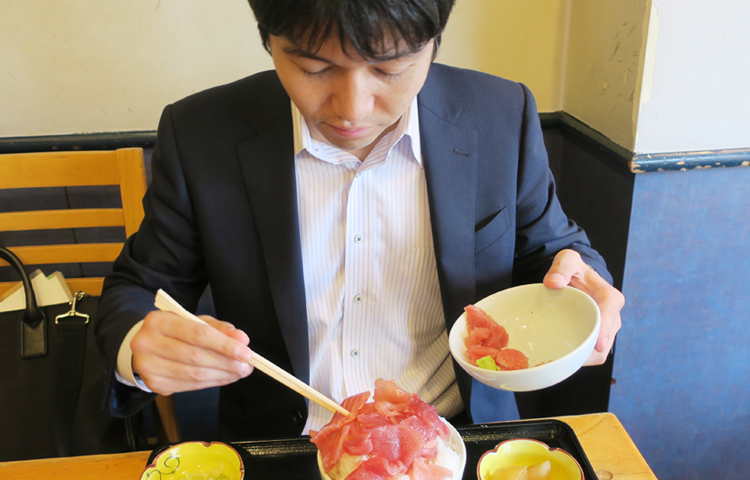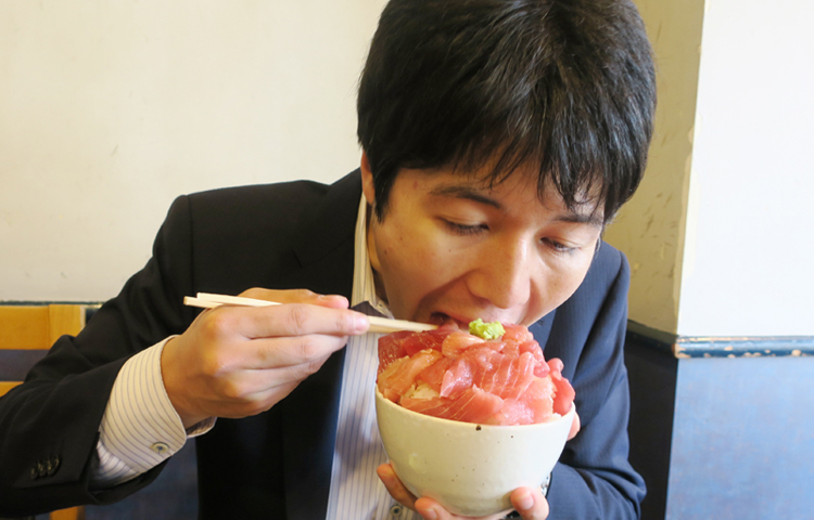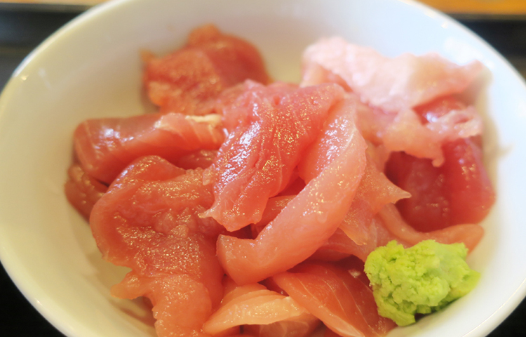 ▲この刺し身をご飯の上に丁寧に乗せて、“丼”にして食べるのが美味い食べ方だそう。