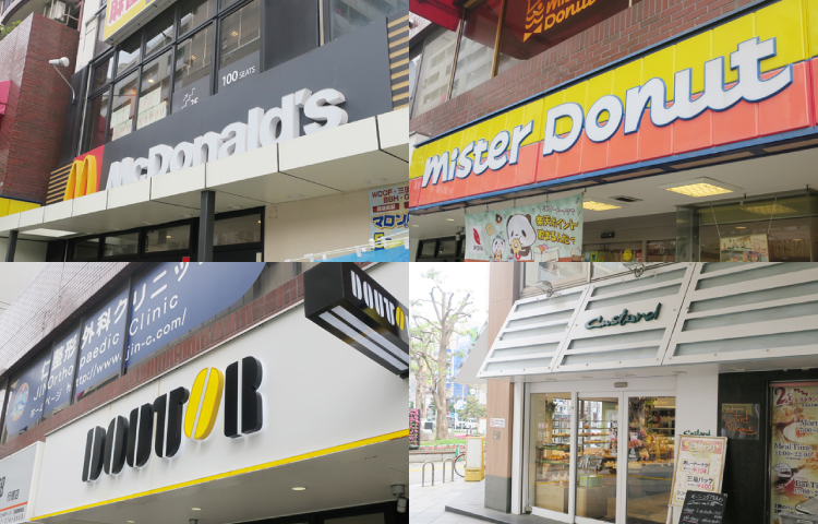 あると嬉しい、定番のファストフードチェーンが揃っています!軽く食事を済ませたり、
