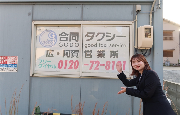 ▲こちらが東広島営業所(旧:大学タクシー※合同タクシーグループ)です!入口に大きな看板が目立ちます!