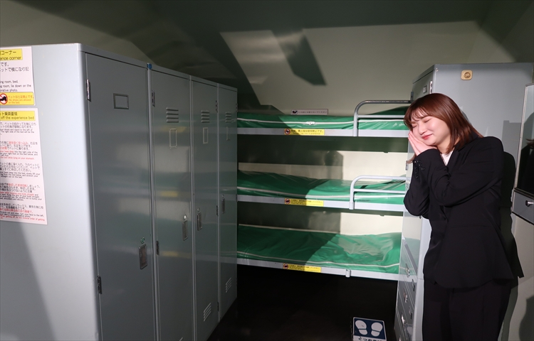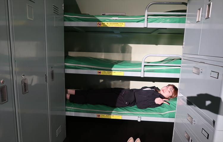 ▲これは艦内のベッド。三段ベッドなんですね!身体の大きな自衛隊員さん入るのかな💦
