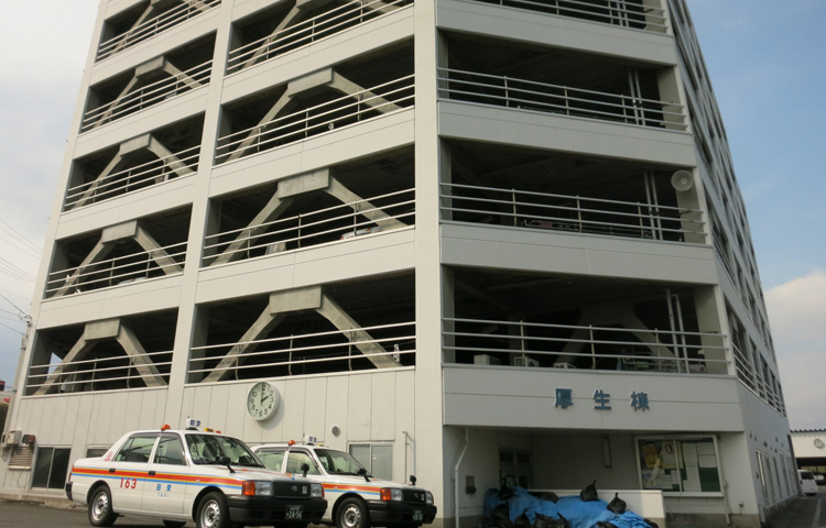 タワーのようにそびえ立つのは何と7階建てのタクシー専用駐車場!