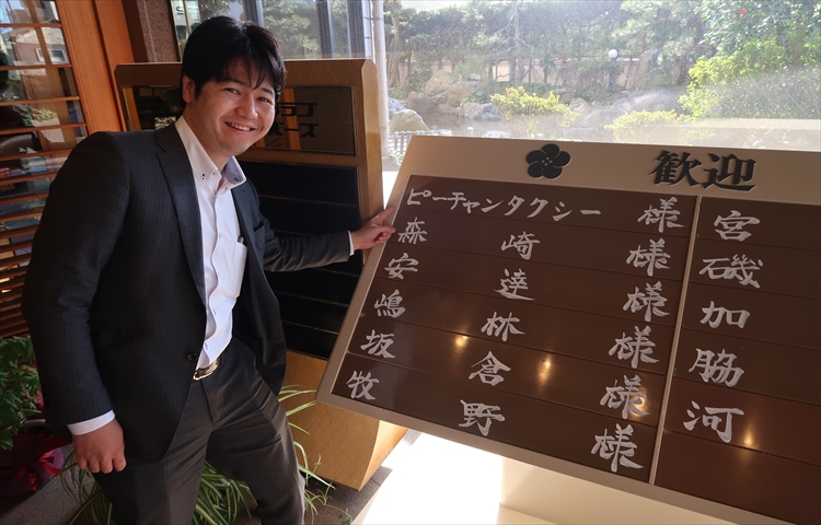 ▲入口すぐにある歓迎ボードに「ピーチャンタクシー様」って書いていただいて、凄く嬉しい!
