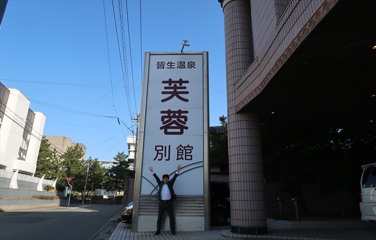 ▲こちらが米子市皆生温泉にある「芙蓉別館」さんです!看板がめちゃくちゃ大きい!ちなみに、鳥取砂丘から米子市までは車で約1時間30分。羽田空港から鳥取砂丘コナン空港まで1時間15分。