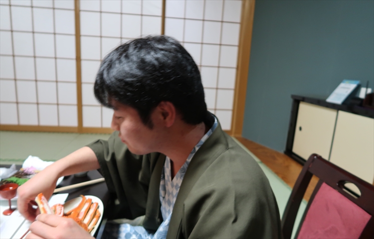 ▲こちらが皆生タクシーの杉本社長です。今日は蟹料理の正しい食べ方を伝授していただけるとの事で、ご多忙の中にも関わらず芙蓉別館まで駆けつけて来ていただきました!