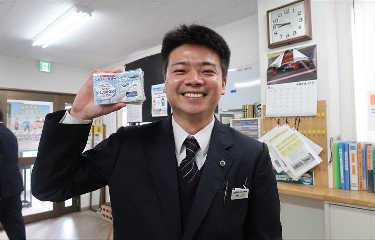 渡邊さん:はい!まず1日目に座学で法令等を学んでいただき、お給料のこと等も説明させていただきます。2日目は午前中に運転での研修があり、午後は接客接遇の研修が行われます。3日目には洗車方法やタイヤ交換のやり方も学んでいただきます。その後未経験者は教習所に10日間程通っていただき実技と学科試験を受けて2種免許を取得していただきます。