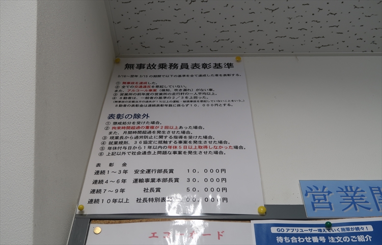 ▲無事故乗務員表彰があります!最大で10万円の表彰金がいただけるとのことで、頑張りがいがありますね!