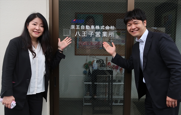 ▲心地よいウォーキングの末、京王自動車八王子営業所さんに到着しました!私と一緒に写っている綺麗な女性は京王自動車の採用担当者で泉さんと言います!京王自動車さんは採用担当者が数名おりますが、運が良ければ泉さんと面接でお話できるかも!!