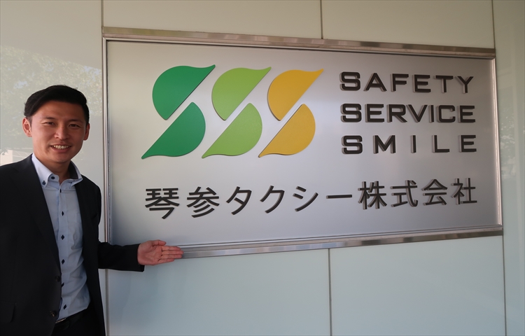▲こちらは琴参タクシーさんのスローガンであるスリーエス『SAFETY(安全が第一)SERVICE(快適な空間づくり)SMILE(笑顔で応対)』です!素敵なスローガンですね!