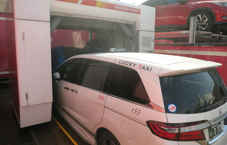 今回の取材先であるラッキー自動車さんへ、ホテルから取材も兼ねてラッキー自動車さんのタクシーを利用させてもらい向かいます。待つこと5分で迎車が来てくれました。