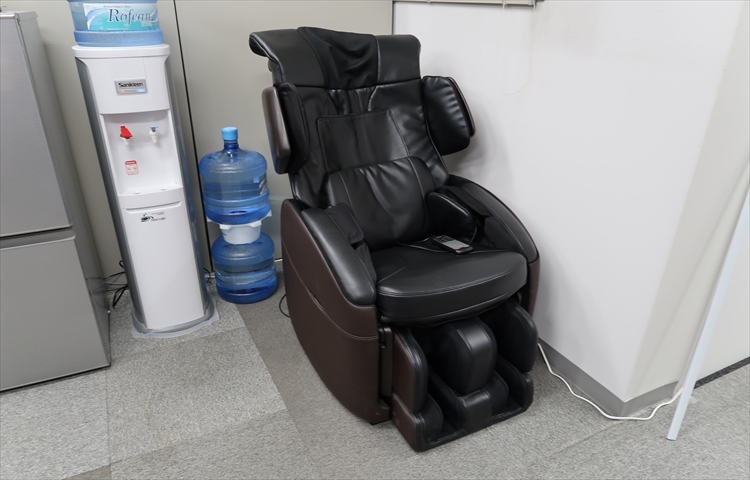 休憩時間はソファでまったり同僚と談笑するのも良し、昼食を取るのも良し、マッサージで癒されるも良し。好きなようにお過ごし下さい☆
