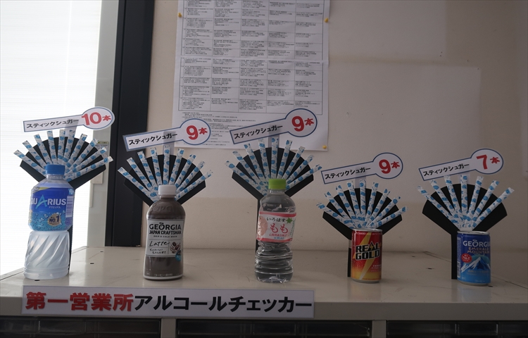 ▲お砂糖に気を付けて頂きたいという思いからこのようなサンプルが点呼場にあります。