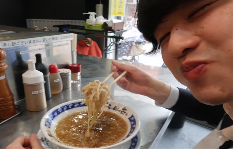 ▲ワシワシごわごわ麺をすすります!口に広がる麺の濃い味がたまりません…!