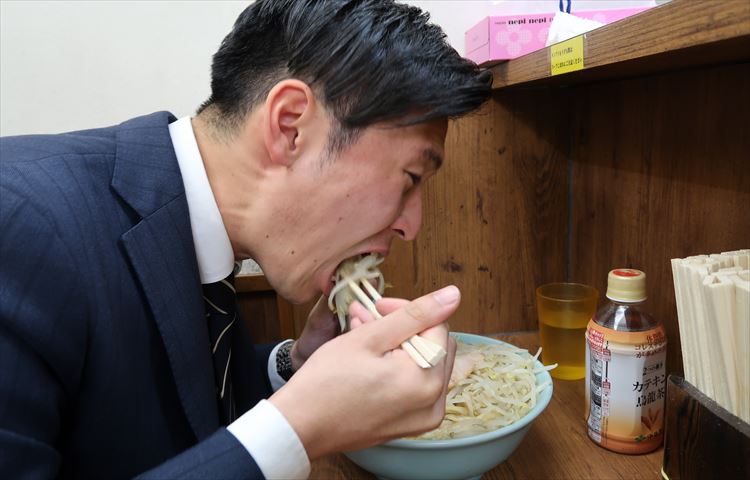 ラーメン二郎のボリュームに負けそうになりましたが、なんとか15分程で完食できました。
