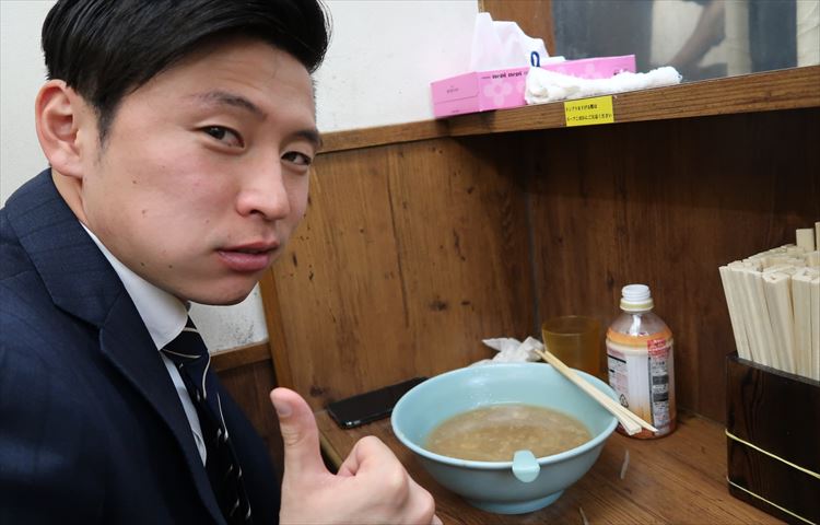 スープがしっかり麺に絡みつき、さらに麺もモチモチしていて旨すぎです!
