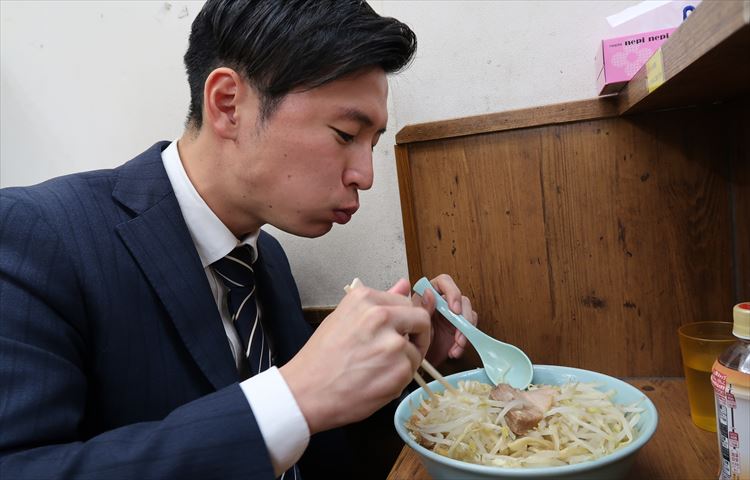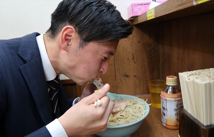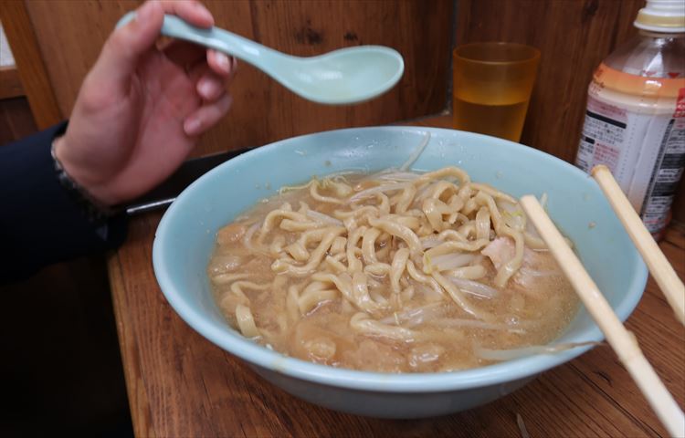 これにより麺がスープを吸いすぎず、最後まで麺を美味しく食べられ、逆にもやしをスープに吸わせてしんなり美味しく食べられるジロリアンの秘技です。