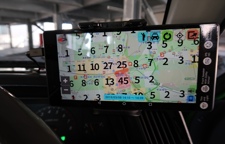 過去の膨大な統計データを元に自動予測してタクシー車内の専用タブレットに表示できるシステムです。