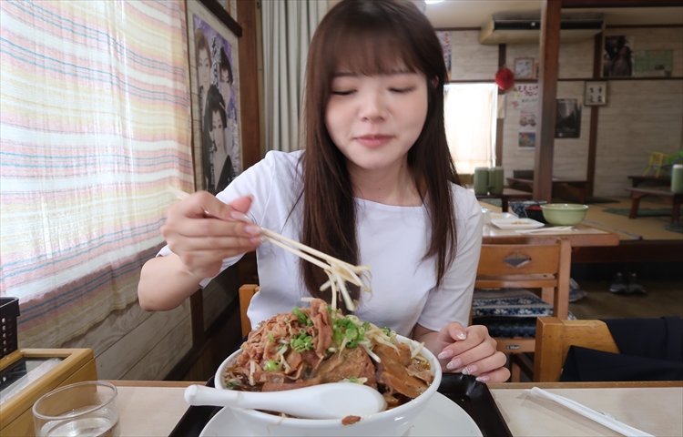 ▲コシのある麺が最高!あと、甘いタレがしみ込んだやわらかいお肉とシャキシャキのもやしが相性抜群です!✨✨