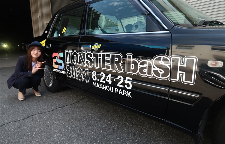 ▲中四国最大級の野外ロックフェスティバル『モンバス』ことMONSTER baSH(モンスターバッシュ)とのコラボタクシーです♪こういった一大イベントとのコラボを実現するあたり、古竹社長の手腕は流石だと思います!
