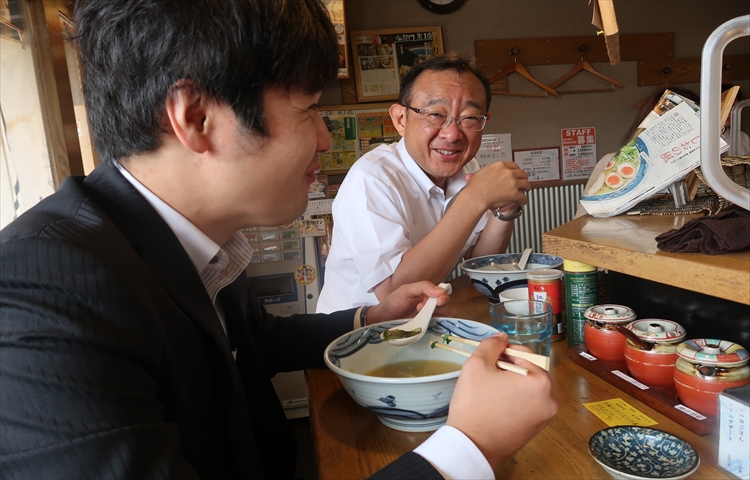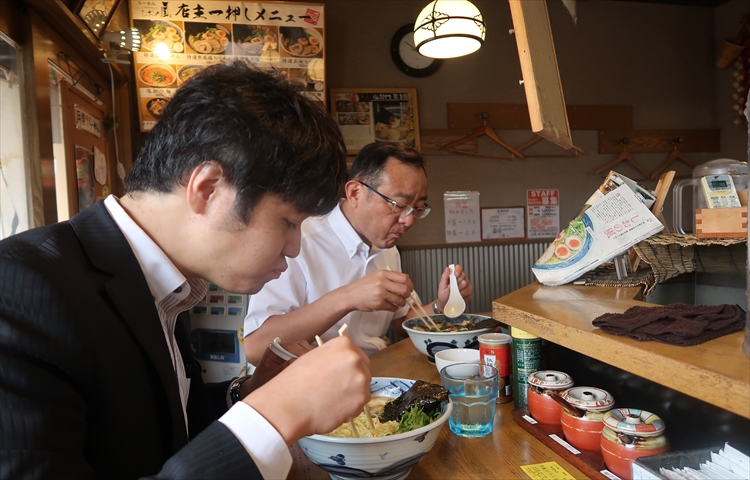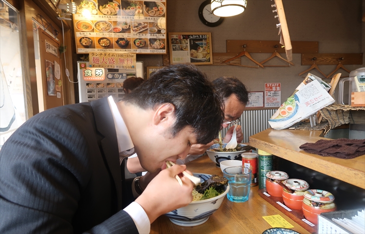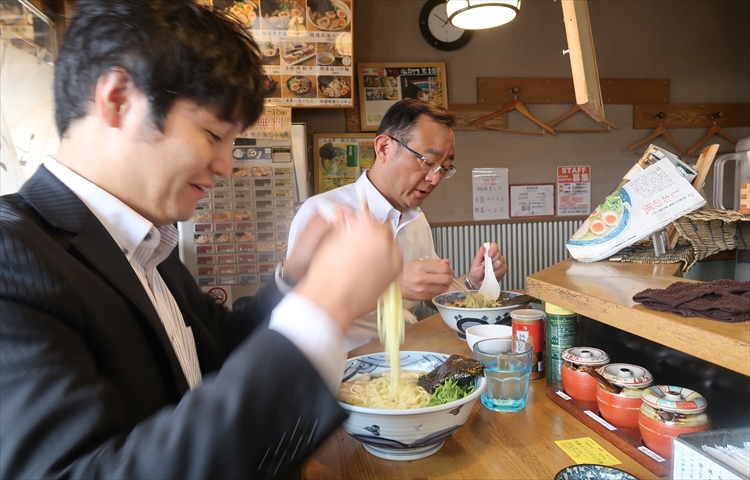 東執行役員:もうお昼ですね。会社の隣に美味しいラーメン屋があるんですよ!良かったら一緒に食べませんか?