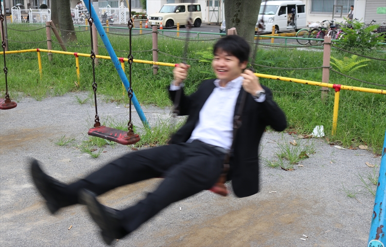 ▲子供に戻ってブランコに乗りたいと思います!