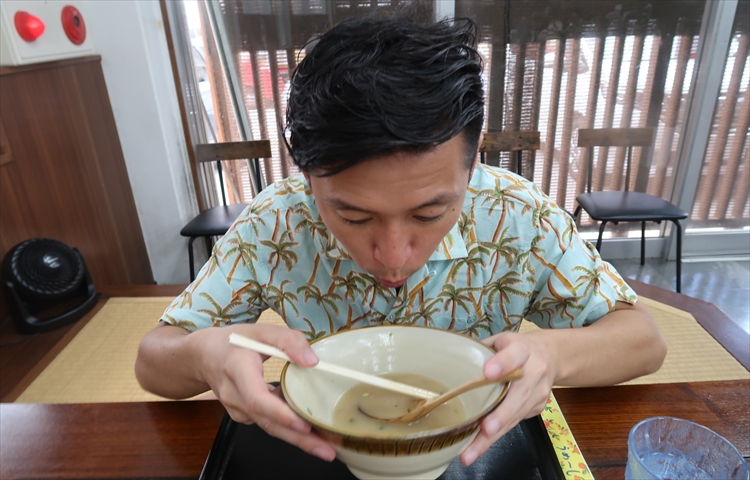 ▲スープは優しい味わいで1リットルでも飲めそうなので、最後の一滴まで飲み干します!