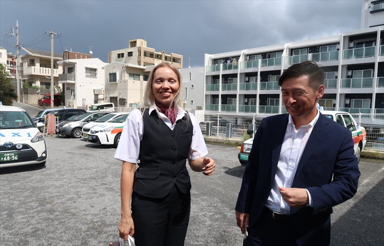 マリアさん:2年ちょっとです。タクシードライバーをやっていて感じたことは、「人の優しさ」です。私はコミュニケーションを取ることはできますが、地理が不安でした。今では那覇市内の道は覚えましたが那覇市外では分からない道がまだたくさんあります。そんな時にお客様から道を教えていただけることが多く、優しい言葉までかけてもらえて本当に支えられています。お客様が応援して下さるので頑張ることができています。