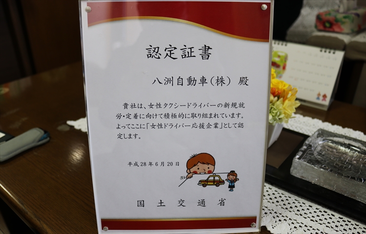 立川常務:こんな風に社長を中心に皆で職場環境の改善に取り組んできた結果、国土交通省の「はたらきやすい職場認証制度」で一つ星を取得したり、「女性ドライバー応援企業」の認定をいただくことができました。