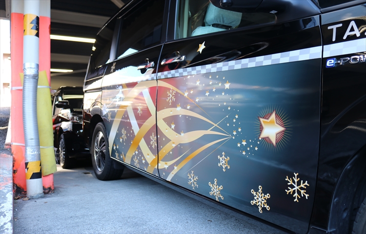 ▲これは八洲自動車さんが毎年ウインターシーズンに行っている、「イルミネーションツアー」で使用される専用タクシー。レインボーブリッジや東京タワー、東京ミッドタウン、ミヤシタパークなど、都内周辺の人気イルミネーションスポットをタクシーに乗って楽しむことができます!